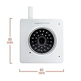 Mit relativ kompakten 11 cm in der Höhe (mit Antenne) und 8,5 cm in der Breite kann die Gigaset Elements Indoor Kamera eher in den Bereich der kleineren Überwachungskameras eingeordnet werden. Wie in dieser Klasse üblich, wird auch diese HD-Kamera mit einer App konfiguriert und gesteuert, auf einen externen Monitor kann getrost verzichtet werden.